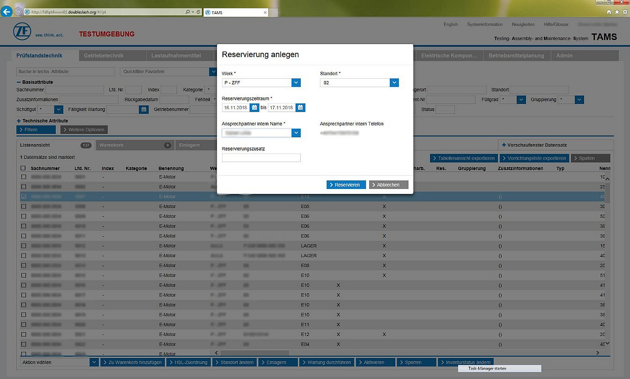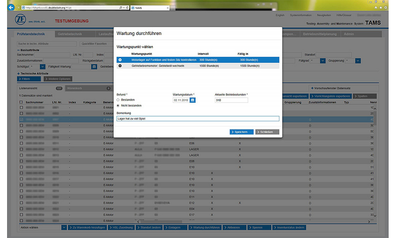 Using the new system known as TAMS, processes can be handled more efficiently and additional functions mapped such as maintenance notifications or documentation. Interfaces to additional internal ZF systems enable TAMS to be used in other departments.