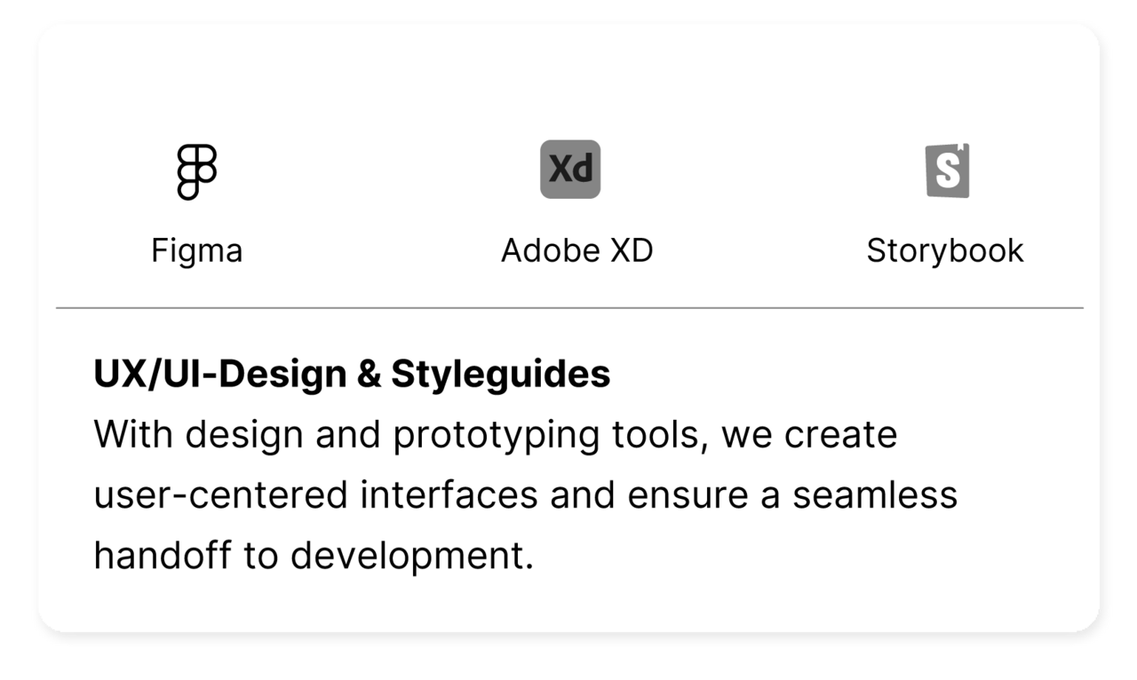 Our user-centered design consistently focuses on the needs of the user. We use the insights gained to develop consistent design libraries that cover entire product ranges. The result: a seamless user experience across all applications, a uniform design language, and significantly faster release cycles. At the same time, these libraries create the basis for maximum automation and efficient further development.